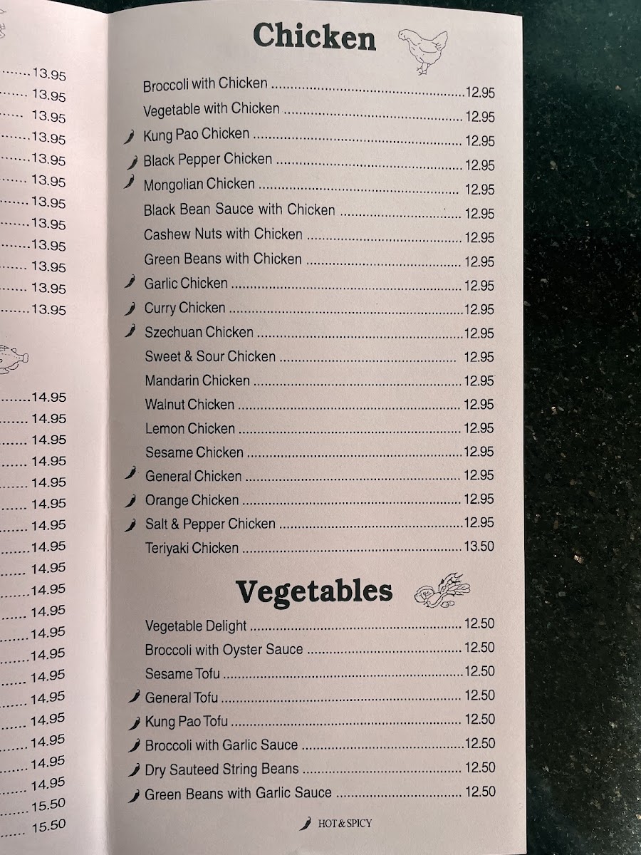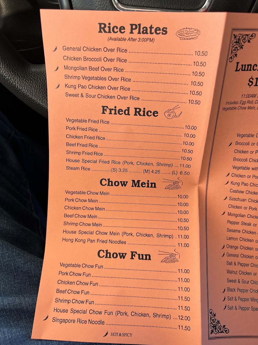 Overall, the menu provides a range of classic Chinese take-out dishes focusing on hearty portions and familiar flavors, primarily suited for lunch and dinner orders. The structure supports quick selection and efficient service for customers seeking convenient meal options.