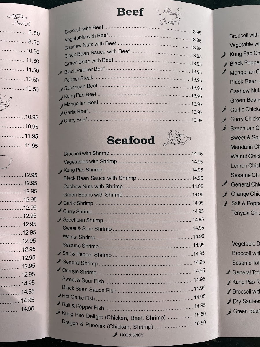 Combo Meals cover a variety of popular entrees such as Sweet and Sour Chicken, Curry Chicken, General Tofu, Mandarin Chicken, General Chicken, Sesame Shrimp, Shrimp Broccoli, Salt & Pepper Ribs, Walnut Chicken, Mongolian Beef, Kung Pao Chicken, Garlic Shrimp, Orange Chicken, Cashew Shrimp, and Walnut Shrimp. These combos typically include side items and are designed for convenient take-out dining.